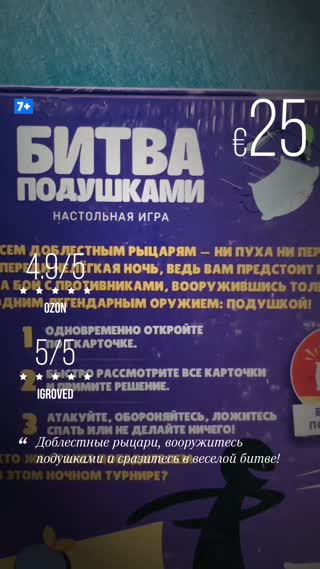 Игра для детей и взрослых, где игроки сражаются, используя мини-подушки и карточки персонажей. Игра развивает внимание и скорость реакции, подходит для семейного и дружеского времяпрепровождения.
